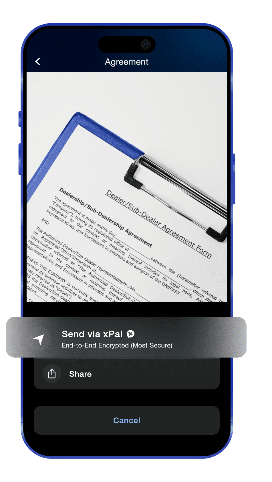 XAVE also allows you to send and receive encrypted files through xPal Ultra Secure Messenger, without the need for any additional registration.